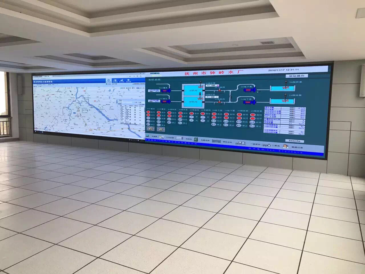 隨著現(xiàn)代城市建設(shè)的進(jìn)行和現(xiàn)代信息科技的飛速發(fā)展,供水企業(yè)需要通過(guò)科學(xué)調(diào)度,逐步提高供水管理水平和服務(wù)水平,供水系統(tǒng)科學(xué)調(diào)度的主要目標(biāo)是在保證供水流量、壓力和水質(zhì)滿足有關(guān)標(biāo)準(zhǔn)的條件下,盡量節(jié)省供水的能量、物質(zhì)和人力資源消耗,降低供水成本,提高供水系統(tǒng)安全性能和運(yùn)行管理水平,我司承建的撫州市供水公司總調(diào)度室將有效地利用當(dāng)今最先進(jìn)的通信技術(shù)和計(jì)算機(jī)技術(shù),對(duì)撫州市供水公司的汝水生態(tài)水廠、鐘嶺水廠、撫北水廠實(shí)現(xiàn)遠(yuǎn)程自動(dòng)化控制和監(jiān)視,對(duì)全市的各個(gè)水廠的生產(chǎn)和管網(wǎng)的運(yùn)行過(guò)程進(jìn)行實(shí)時(shí)監(jiān)控和綜合分析處理,在總調(diào)度室的自動(dòng)化協(xié)調(diào)下相互協(xié)調(diào)、安全可靠、高效經(jīng)濟(jì)的連續(xù)運(yùn)行。同時(shí)總調(diào)度室預(yù)留有數(shù)據(jù)接口便于將生產(chǎn)的所有數(shù)據(jù)并入撫州市供水公司的智慧水務(wù)系統(tǒng)。